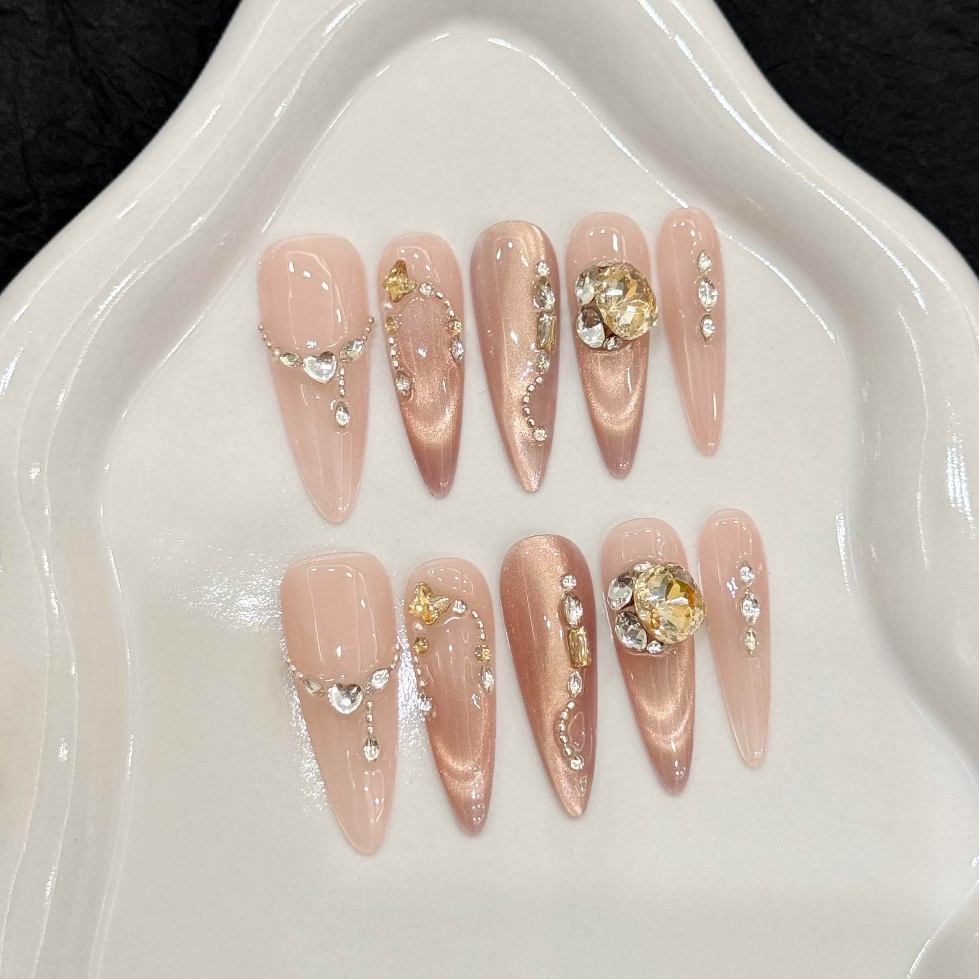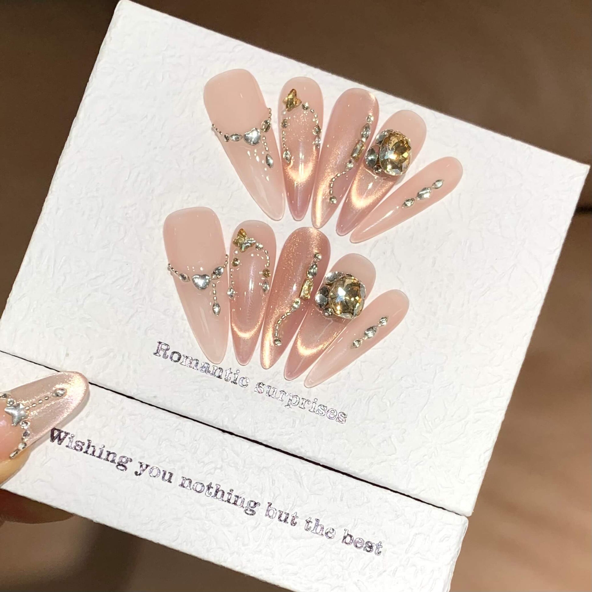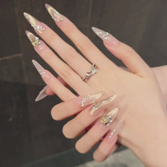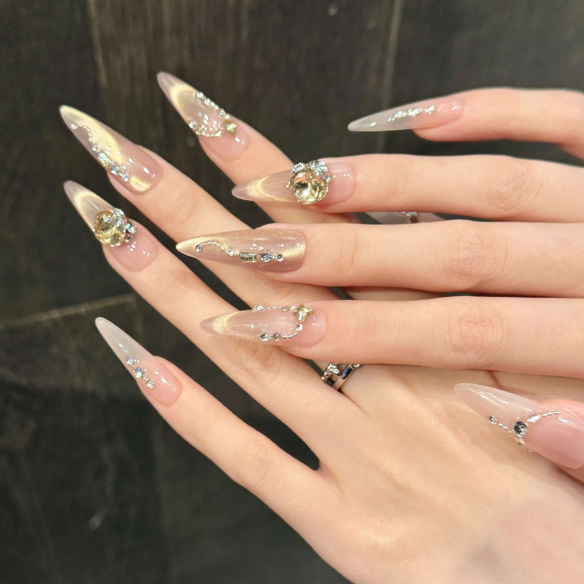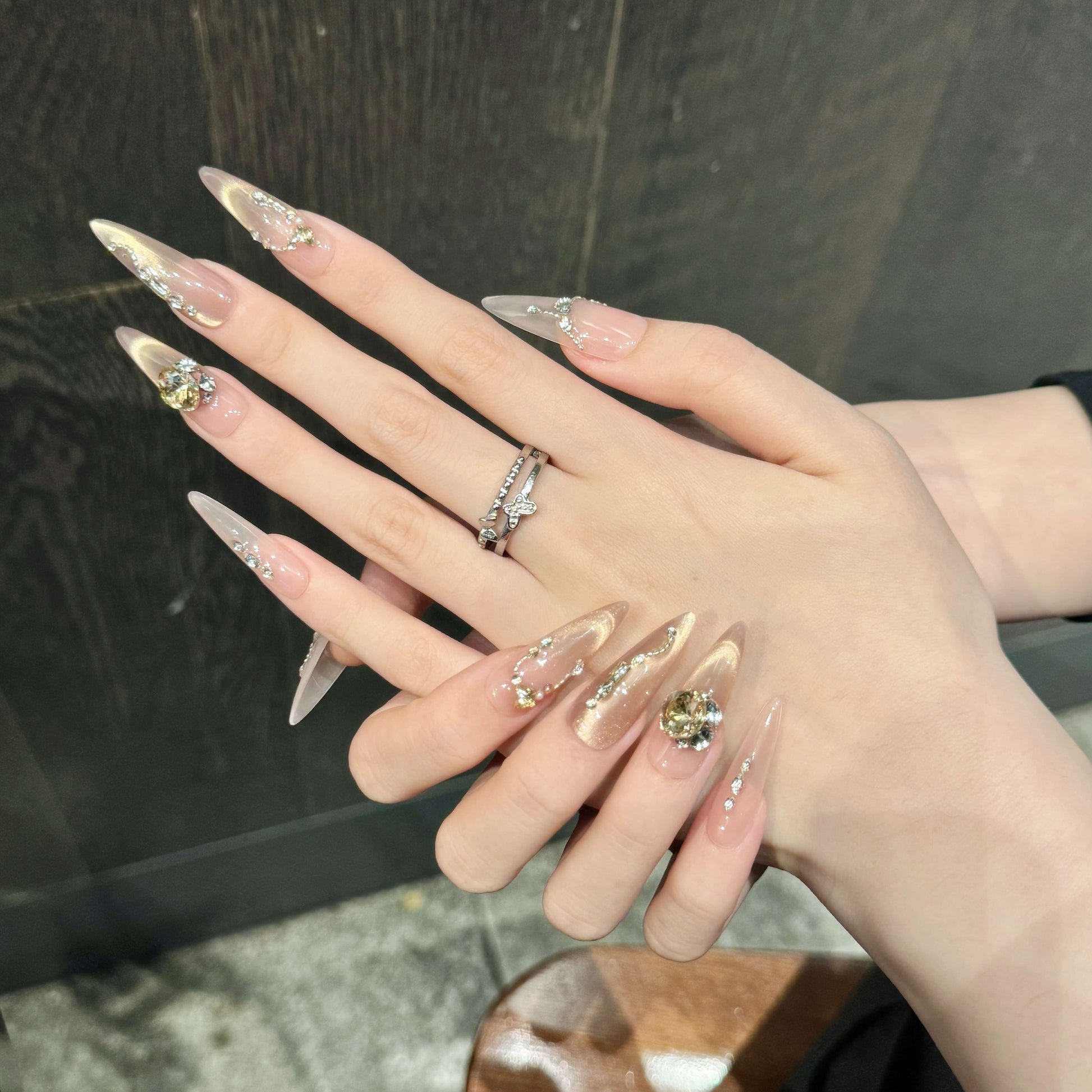 うるツヤヌード×ビジューきらめき|視線を奪うラグジュアリースティレットネイルチップ