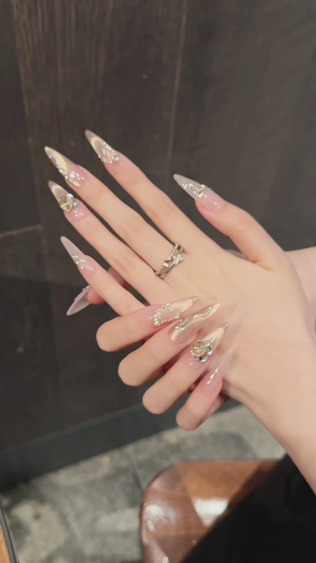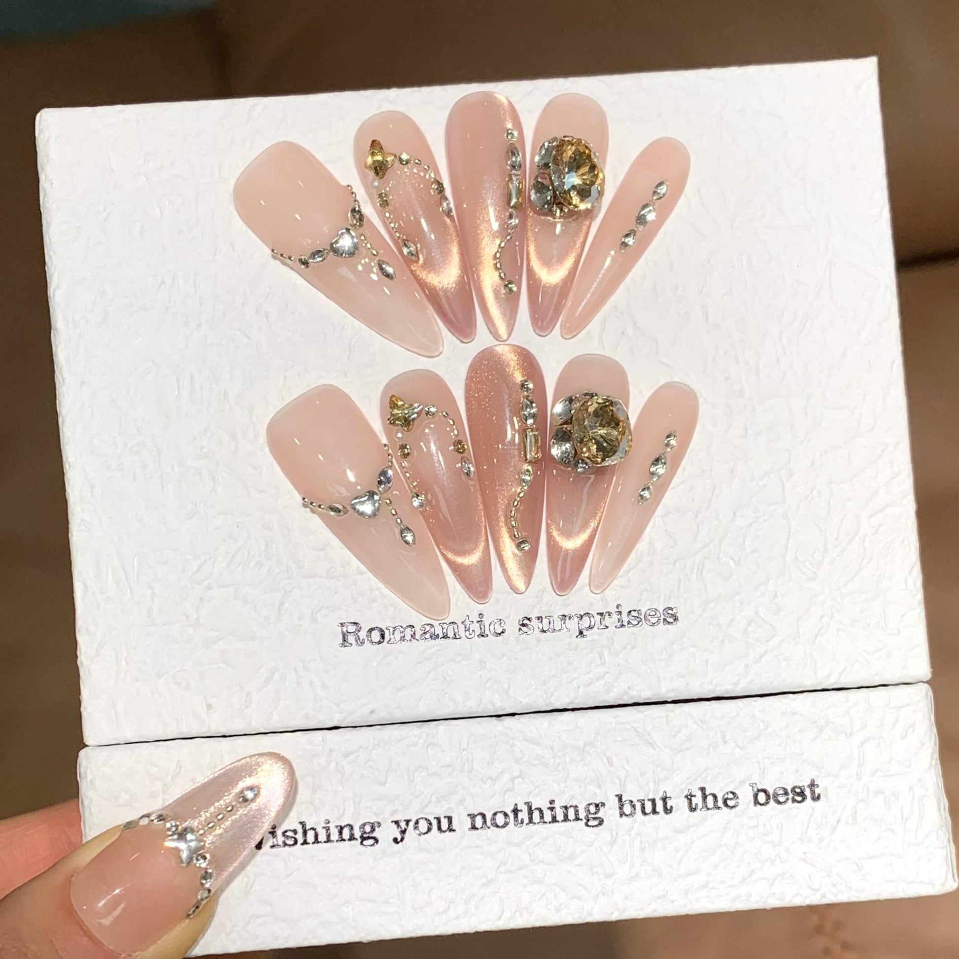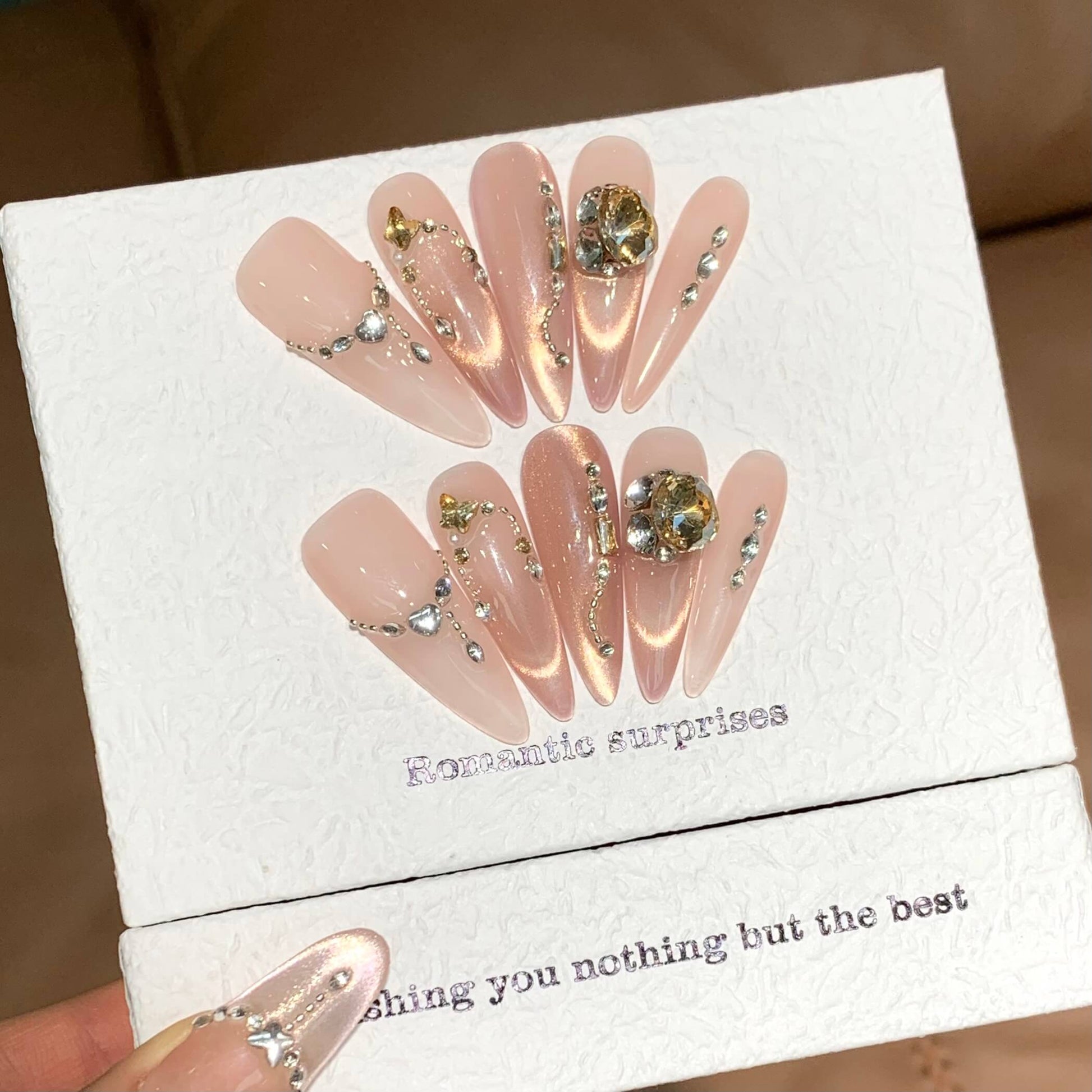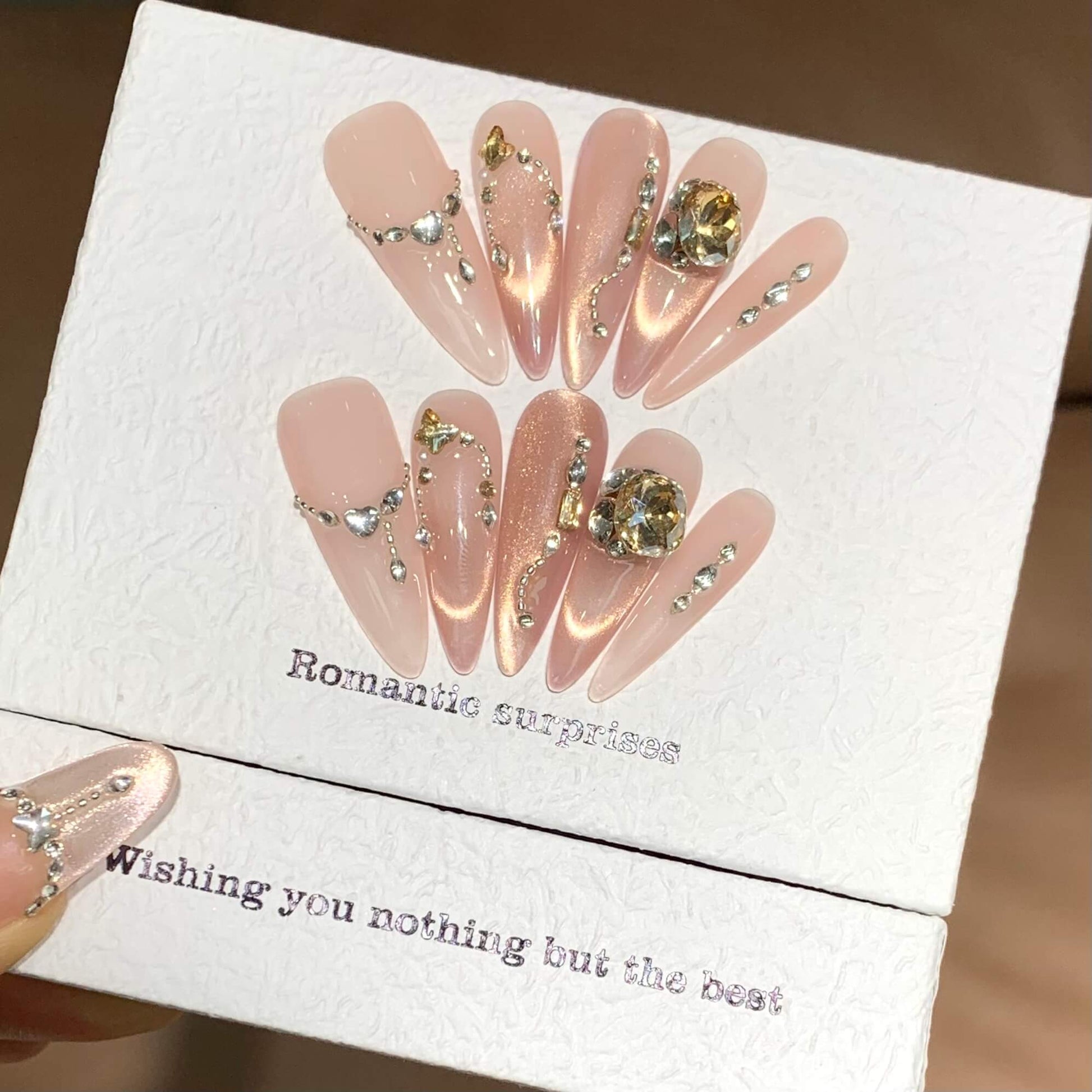うるツヤヌード×ビジューきらめき|視線を奪うラグジュアリースティレットネイルチップ