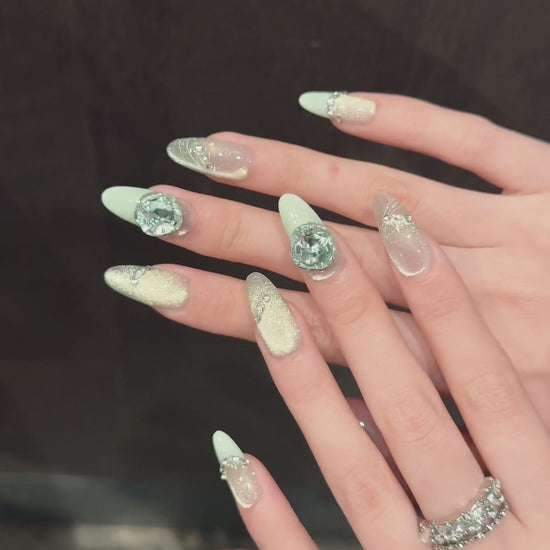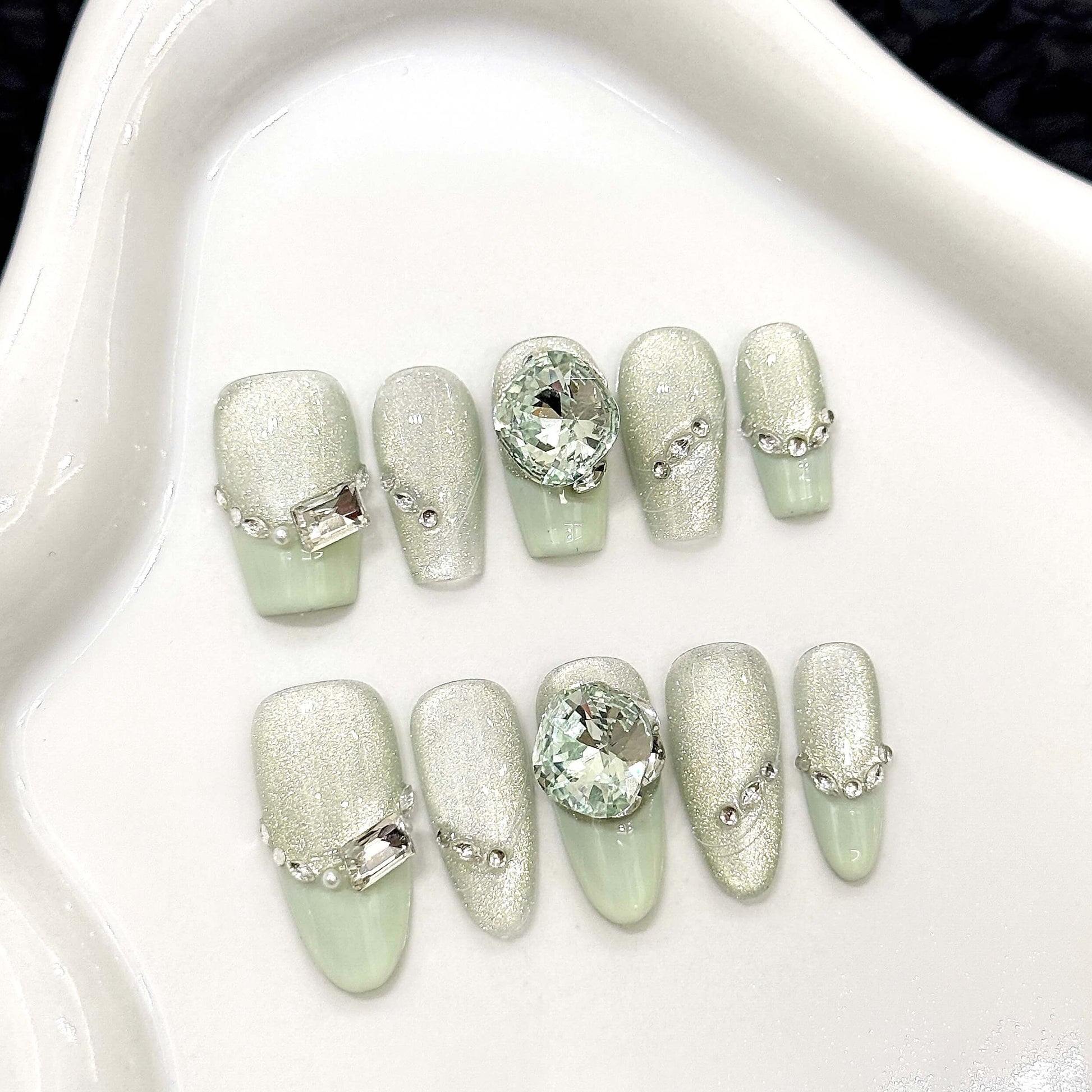 アイスグリーン|大粒ストーンが輝く涼感ジュエリーネイルチップ