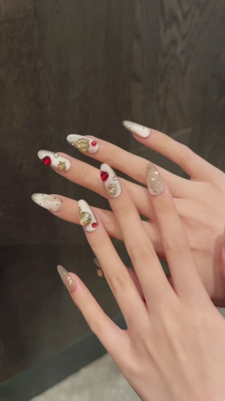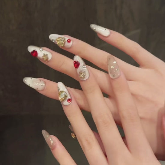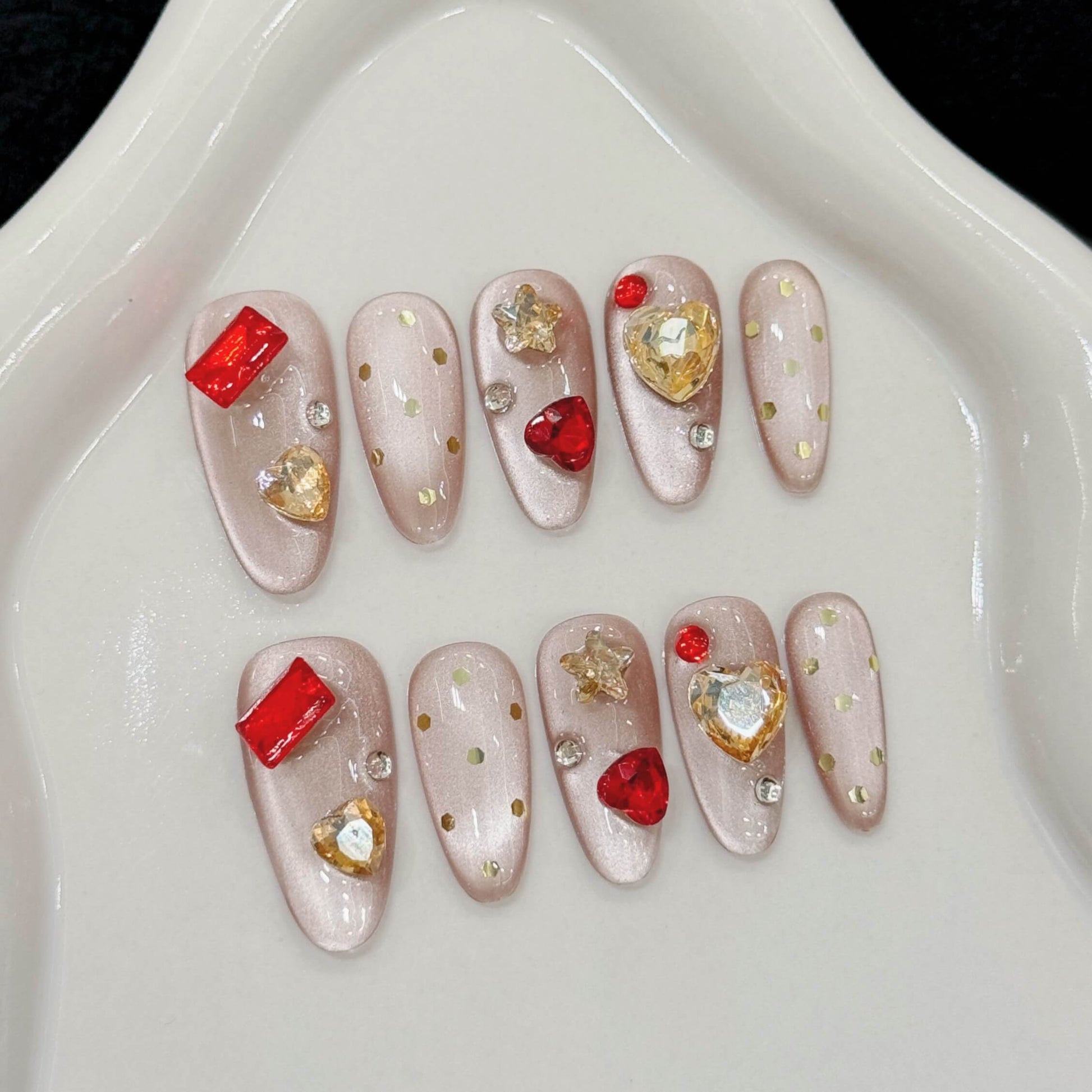ピーチゴールド×ジュエリーハート|きらめき宝石ネイルチップ