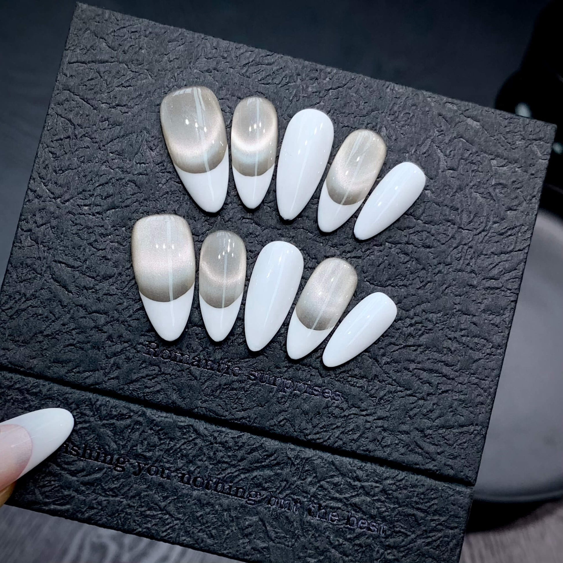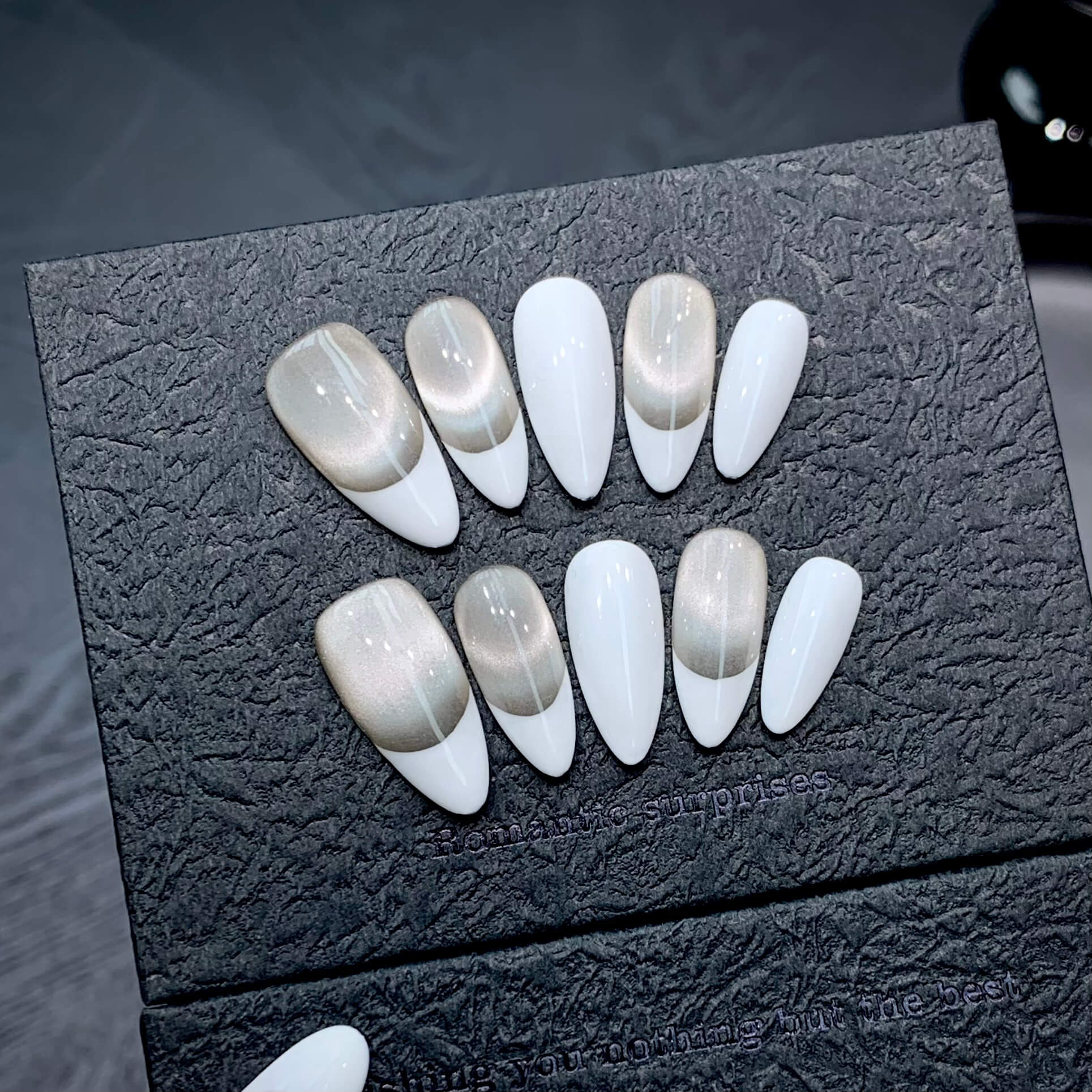 ミニマルフレンチ×ホワイト|上品アーモンドネイルチップ