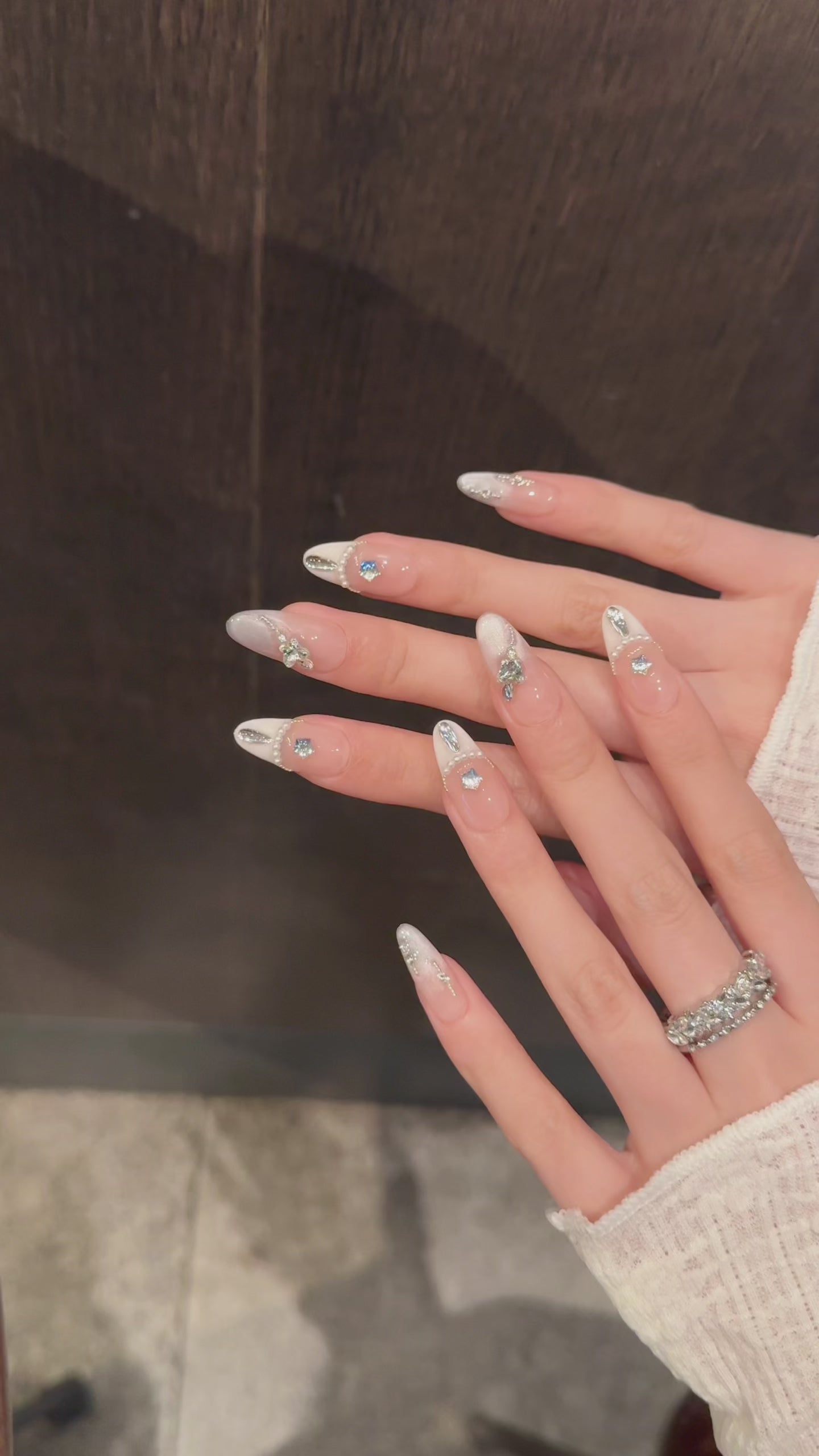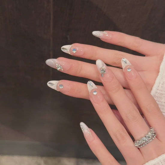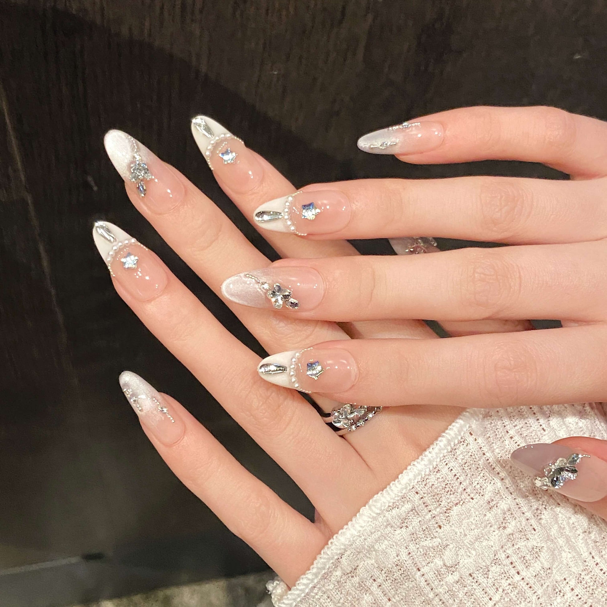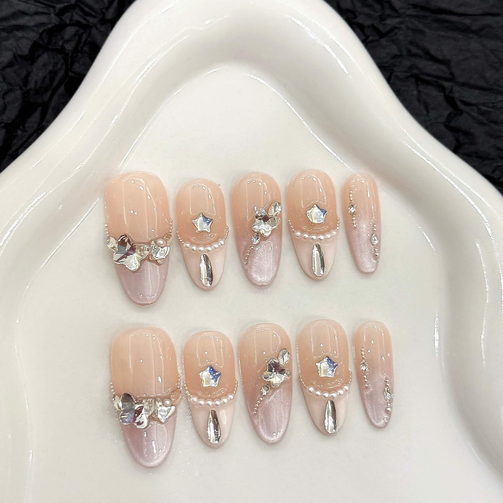 ミルキーピンク×星きらめき|パール&ビジューのフェアリーネイルチップ