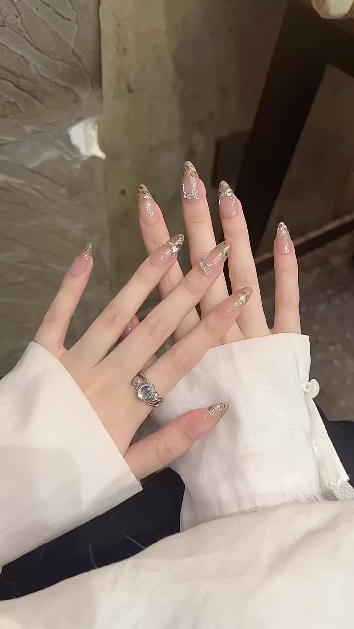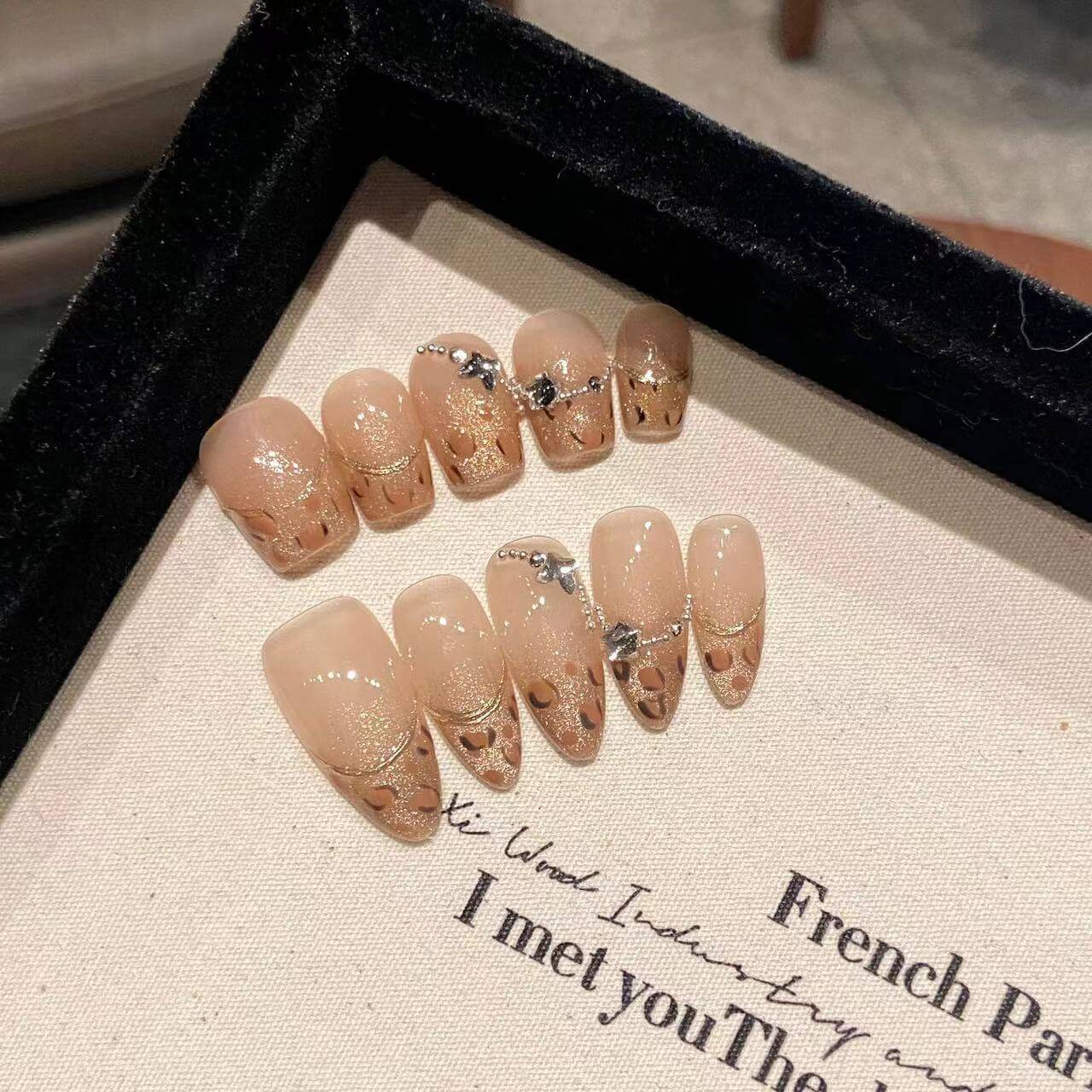 ミルクティーグラデ×チェーン装飾|月桂の女神がまとうクラシカルネイルチップ