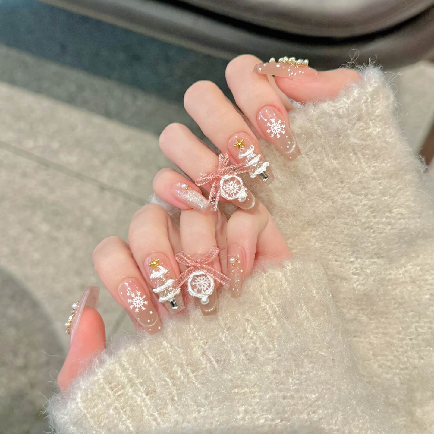 【冬のきゅんかわ】ホワイトピンク×リボン🎀|クリスマス気分の肌映えネイル