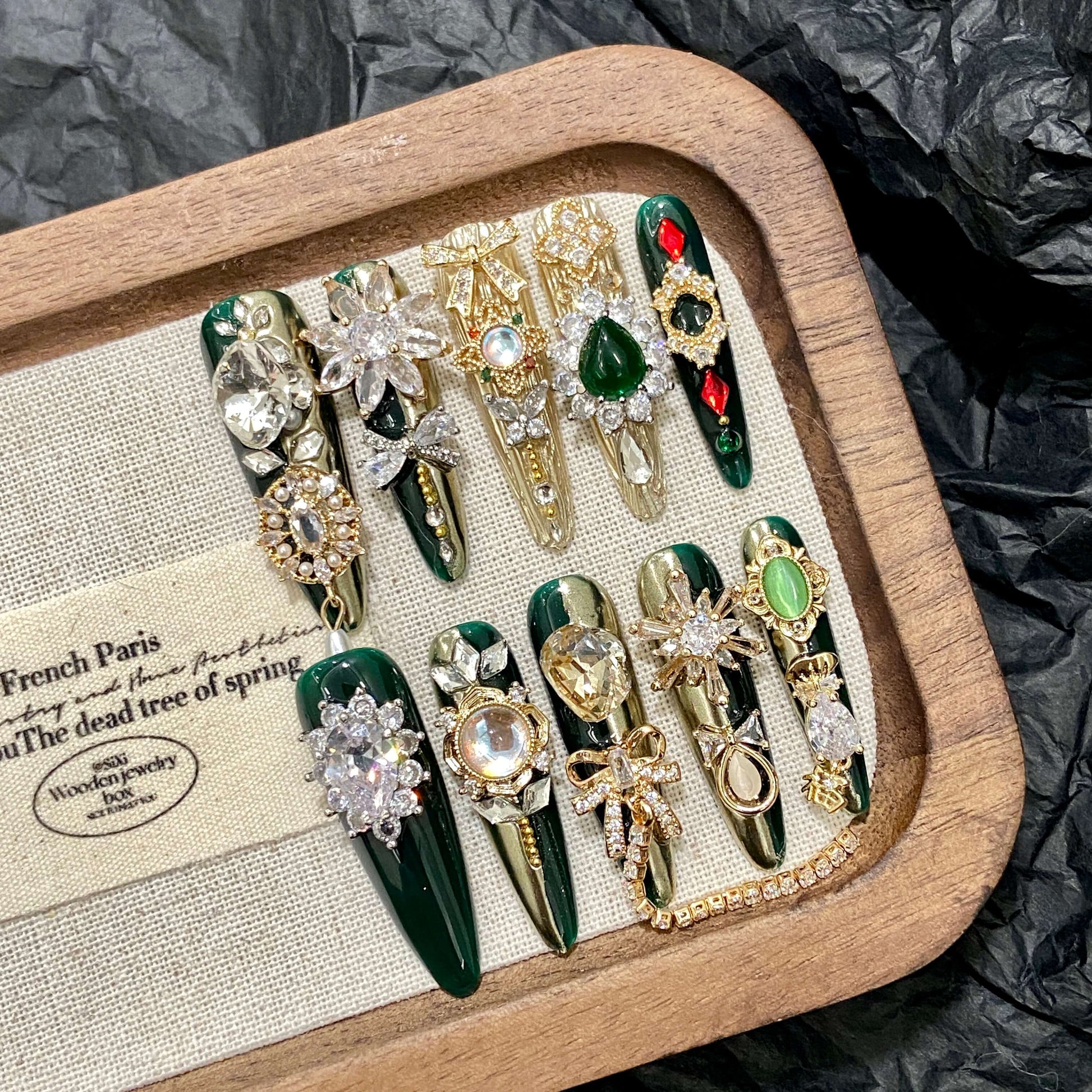 【玉露の艶】翡翠色×しっとり質感ネイル|高級感あふれるハンドメイドチップ