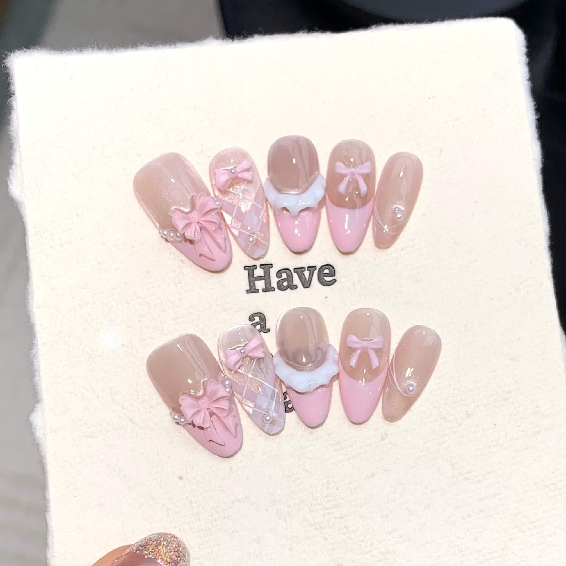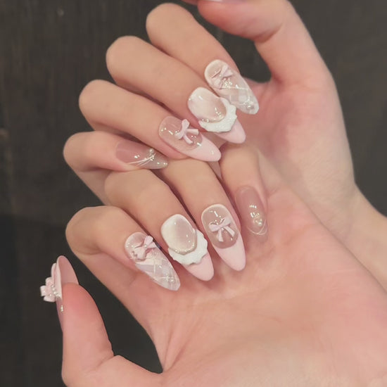 量産型ガーリー×ピンク|リボン&レースのゆめかわネイルチップ